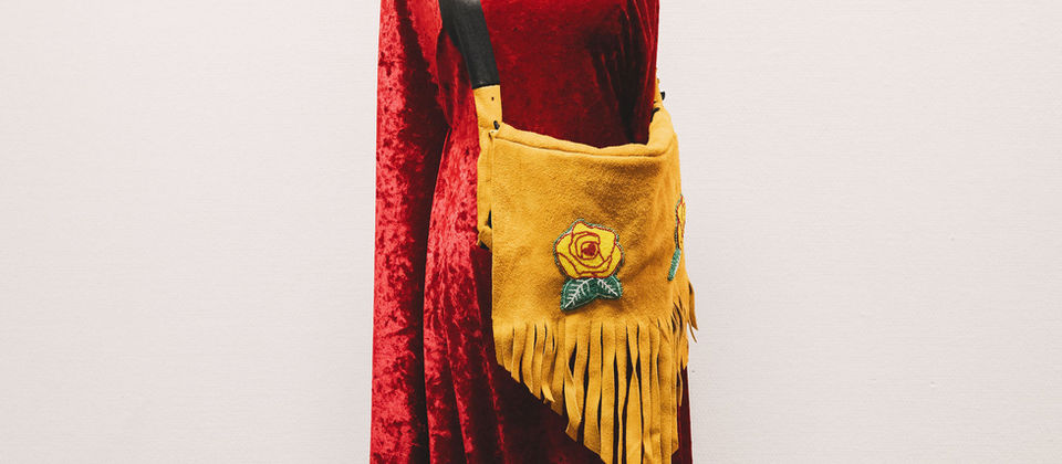Grandmother Earth Dress travels throughout Ontario to support families and communities. She is never meant to be worn in this realm but is symbolic of those in the spirit world. ONWA cares and provides ceremony for her four times per year, when she travels, and to prepare her for the community she will be visiting.