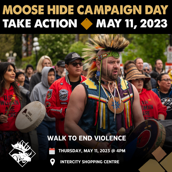 Please drop by our information kiosk at Intercity Mall on May 5-7th , pick up your Moose Hide pin, register for the event, and receive more information about the campaign.